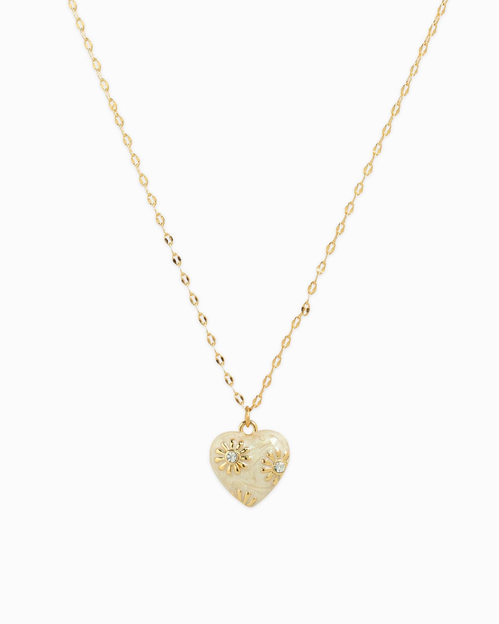 Romantic Daisy Flower Heart Necklace - Pink