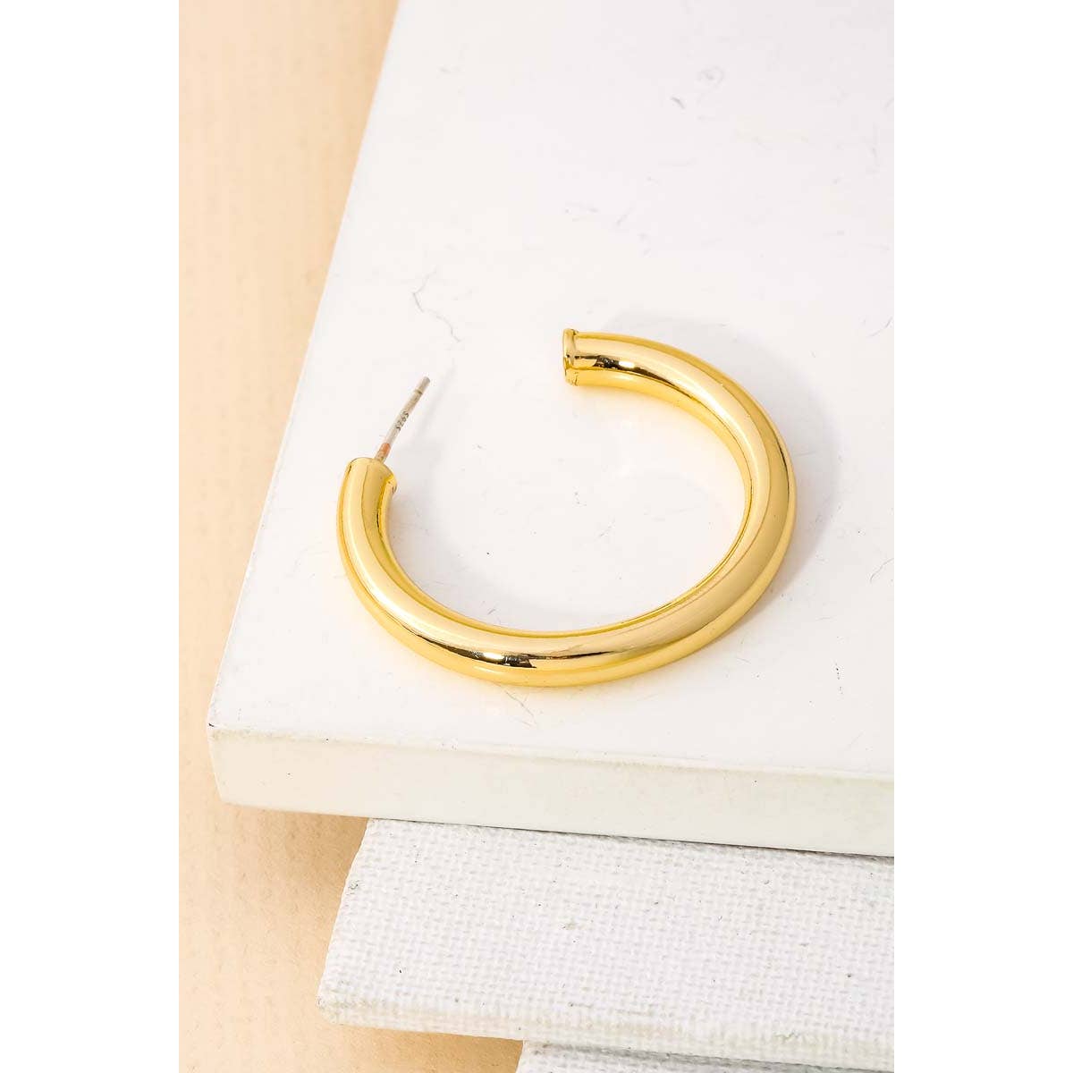 Thick 35mm Open Hoop Earrings - Gold