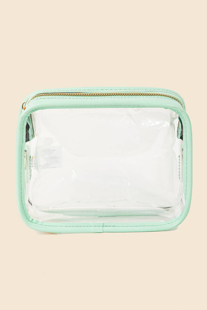 Elevate your style and convenience with our Clear Rectangular Cosmetic Bag in Ivory. Carry all your essentials in this sleek and modern clear stadium bag, perfect for any occasion. Available in multiple colors, this 100% Pvc bag measures 7x3x5 inches.