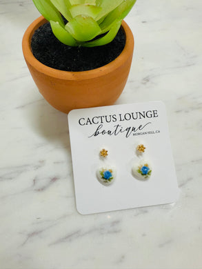 Floral Heart Stud Pack - Blue Gold
