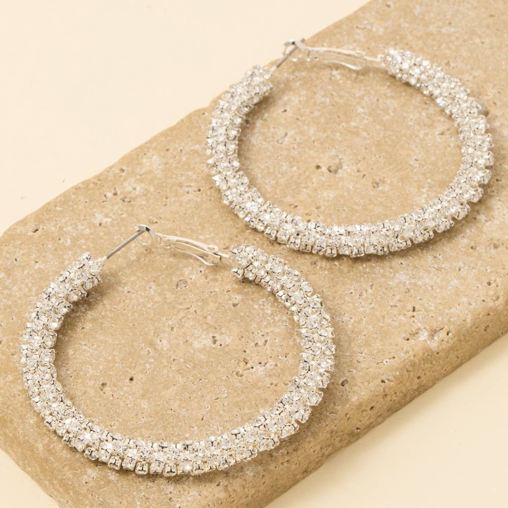A bold and daring choice that is sure to impress, this pair of hoop earrings offers a remarkable 53mm studded tube design. This pair of hoop earrings is an effortless way to add some personality to your outfit.