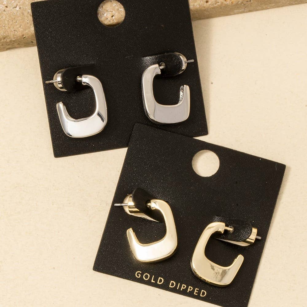 The perfect way to add some sparkle to your outfit, this pair of hoop earrings flaunts a luxurious gold dipped thick squared design. A must-have pair of hoop earrings that effortlessly enhances your style, no matter the occasion. Available in GOLD, 2SILVER. This item is sold in packs of 1.