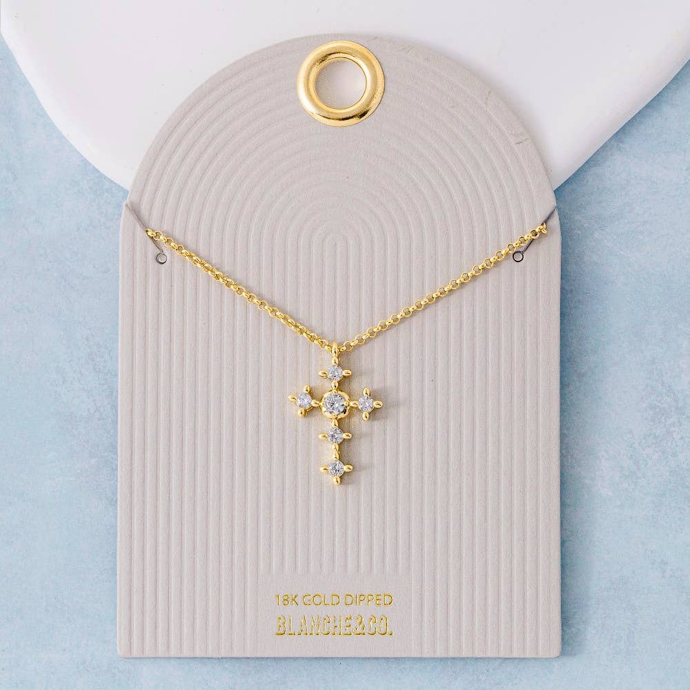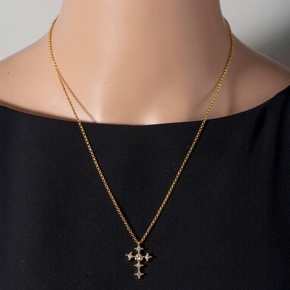 A modern classic, this necklace possesses a fine cz studded cross pendant design. This item is perfect for adding some color and vibrancy to any outfit.