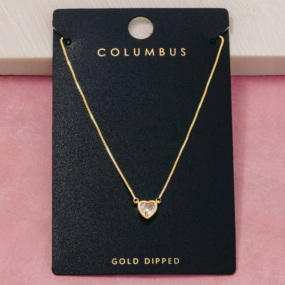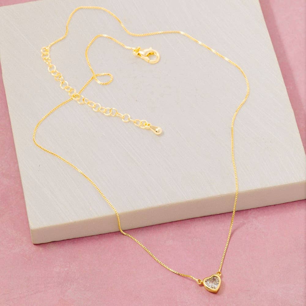 Cz Heart Pendant Gold Dipped Necklace - Gold