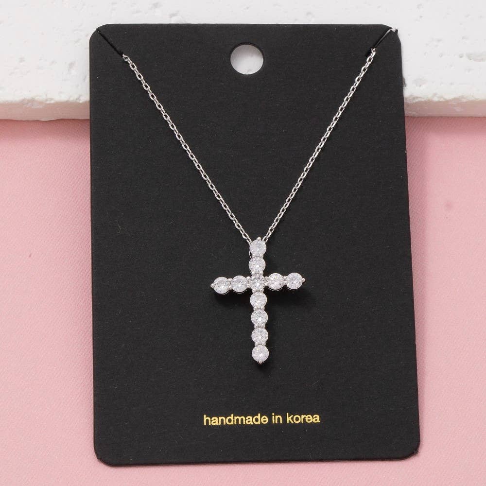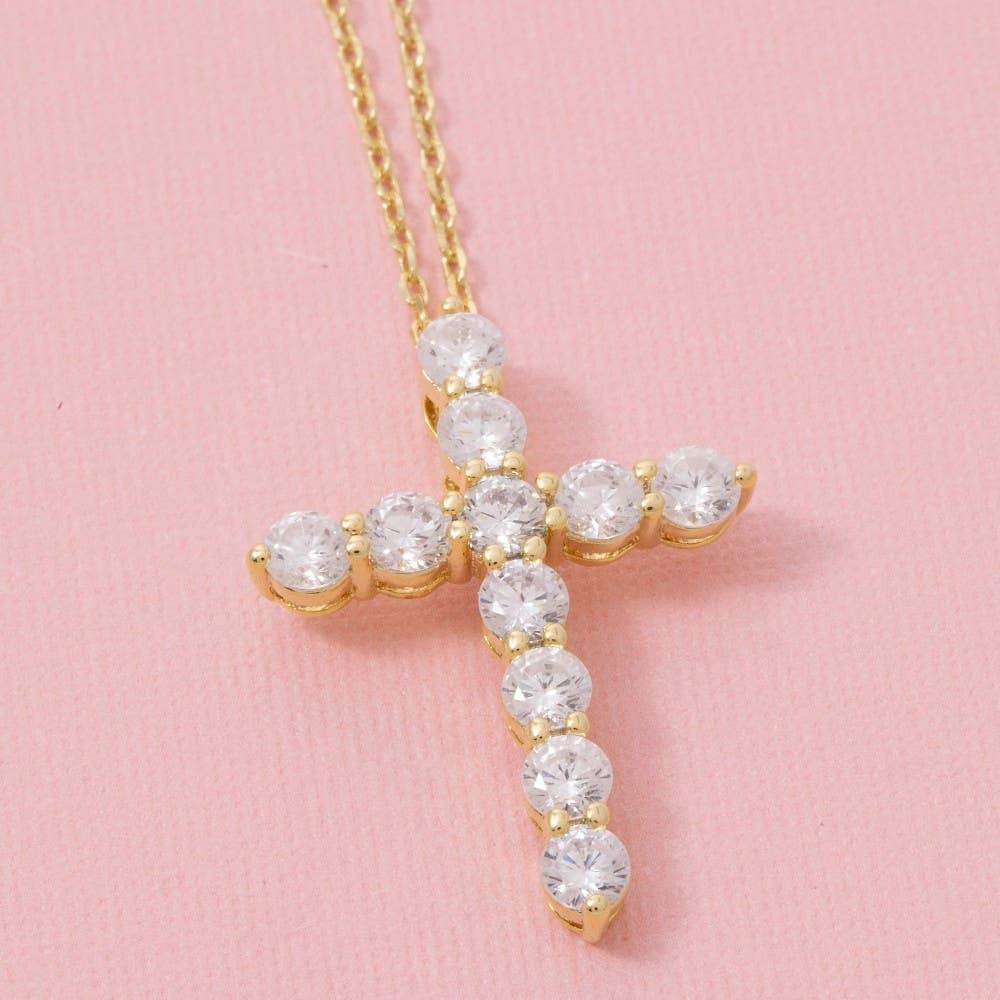 The perfect way to add some sparkle to your outfit, this pendant necklace showcases an alluring cz studded cross design. Perfect for dressing up or down, this versatile pendant necklace adds a touch of sophistication to any look.