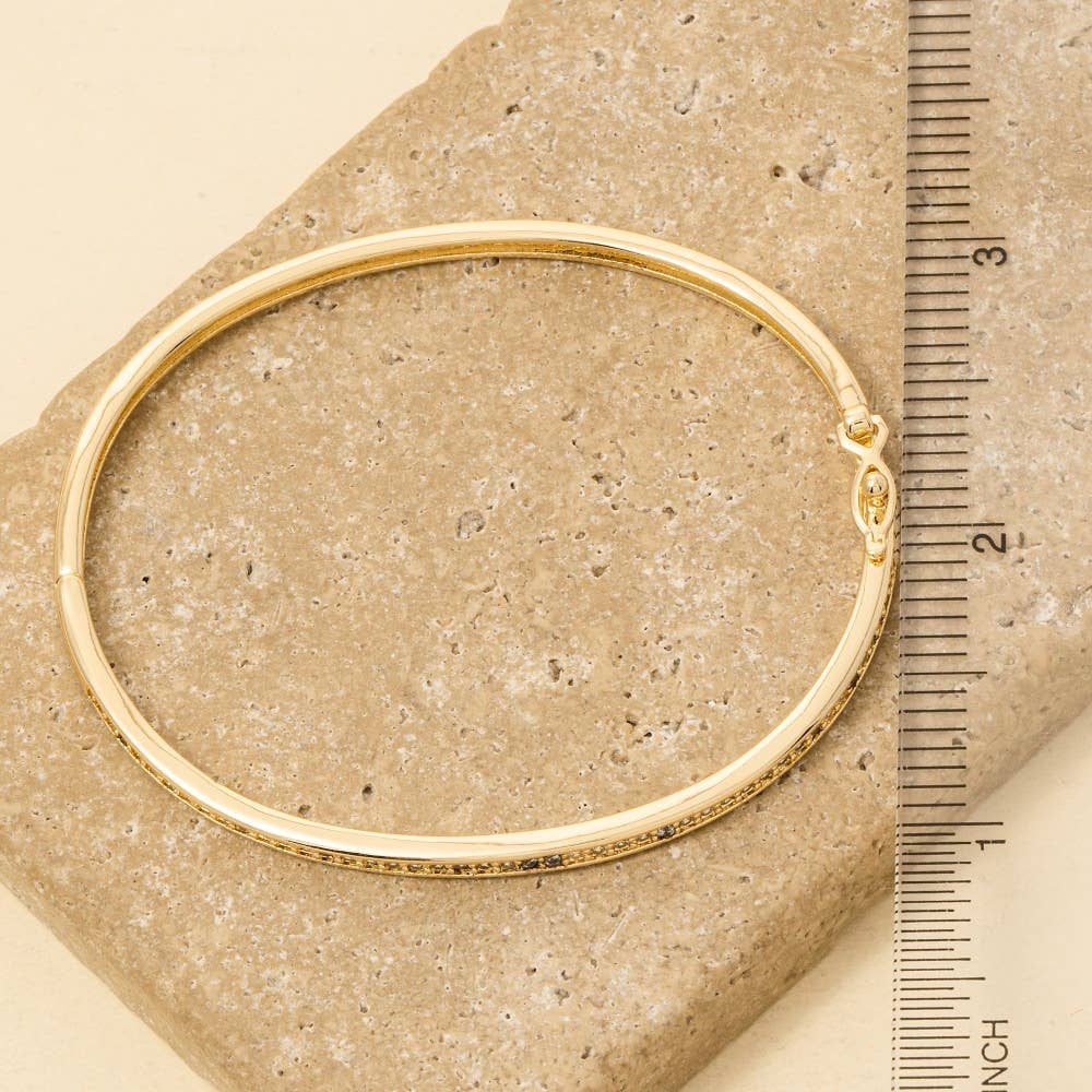 Gold Dipped Cz Pave Hinge Bangle Bracelet - Gold
