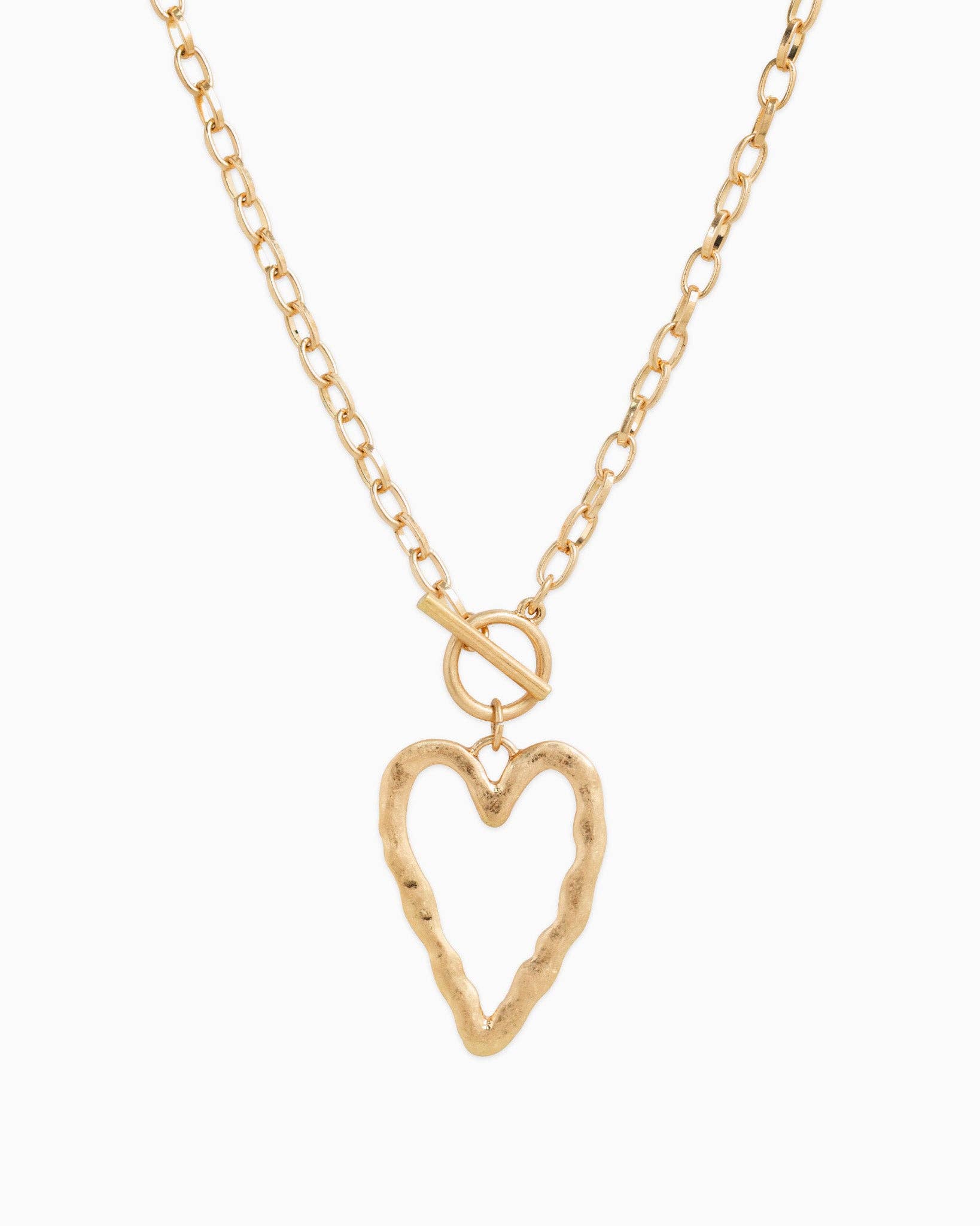 A bold, hammered open-heart pendant in a worn gold finish, delivering a cool, trend-forward silhouette with a vintage-inspired edge. Material: Zinc, Steel Size: 16+3" / Pendant 28*40mm