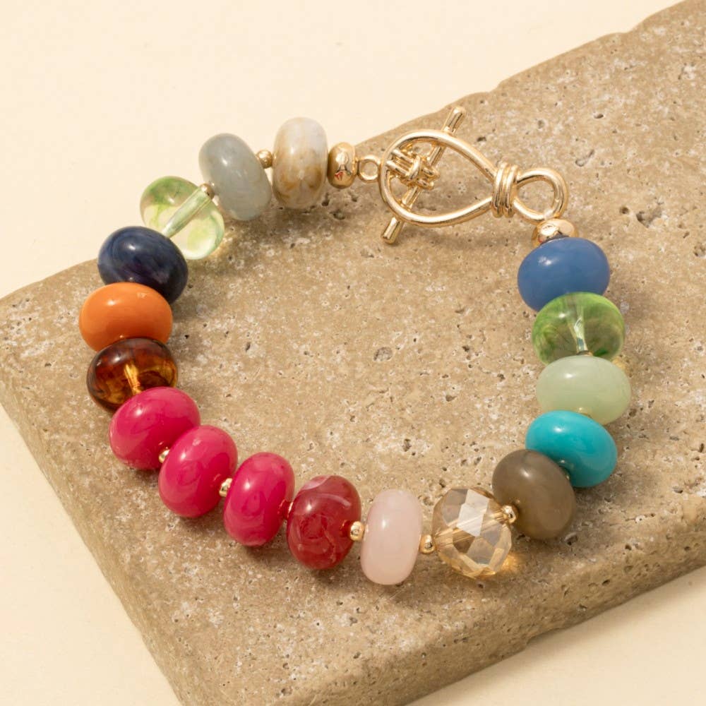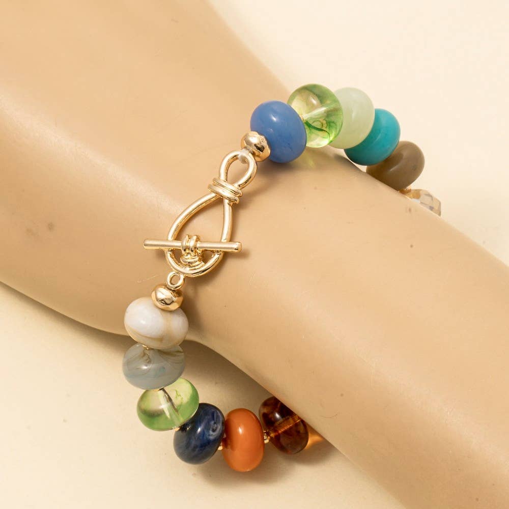 Mixed Faceted And Marble Resin Disc Beaded Toggle Bracelet