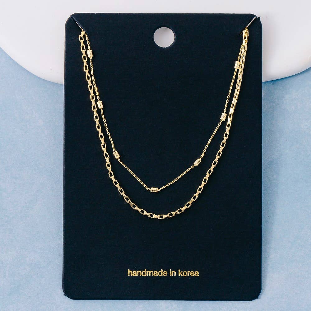 Elevate your style with something unique and daring, this chain necklace boasts a magnificent two row layered design. A stylish chain necklace that's perfect for complementing your favorite outfit. Available in G. This item is sold in packs of 1.