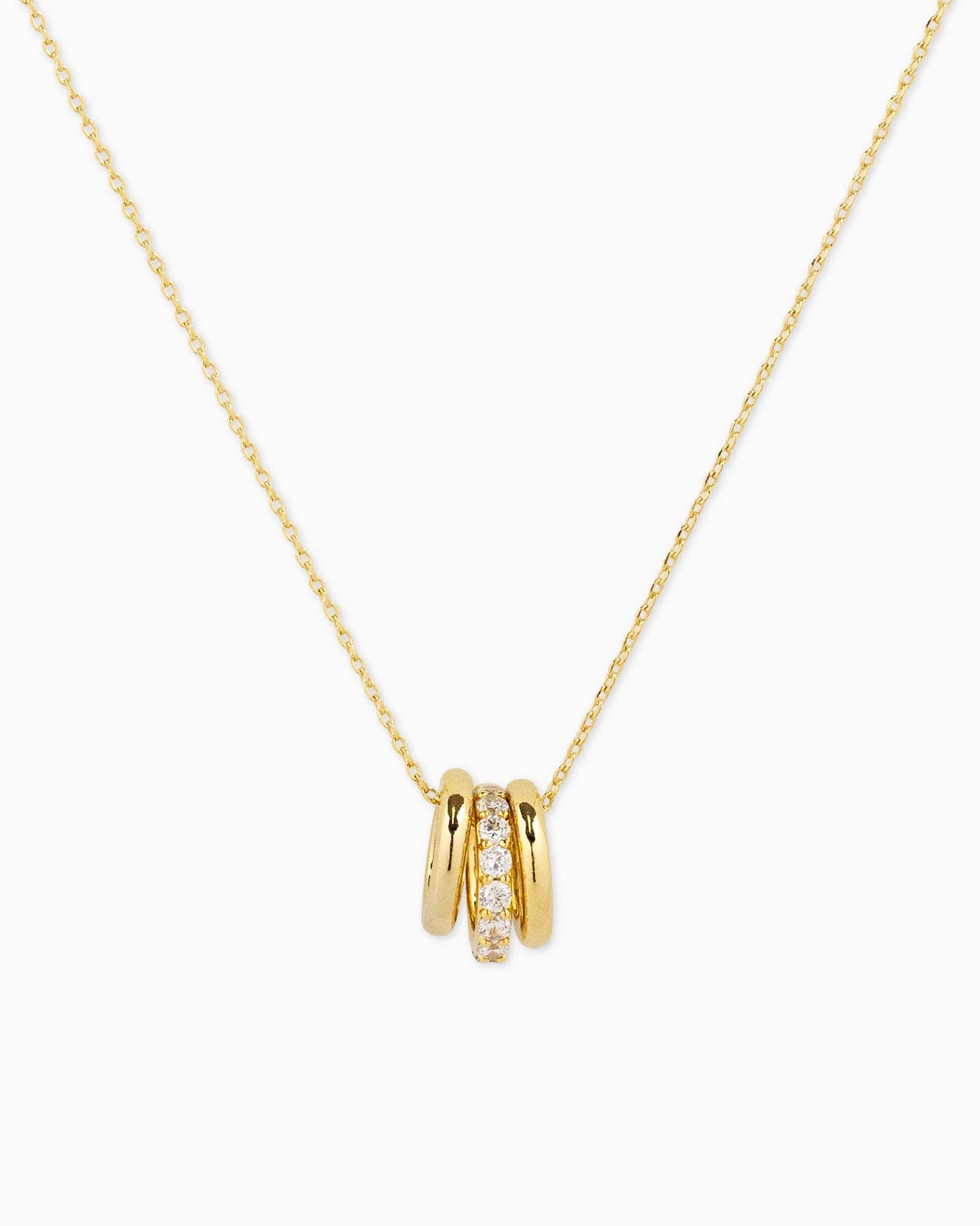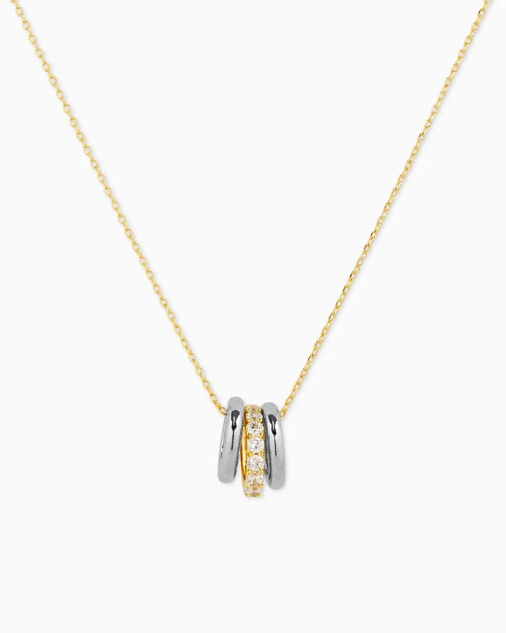 Featuring sparkling CZ stones set in a delicately crafted rondelle charm, this necklace will is a classic yet stunning piece to add to your jewelry collection.