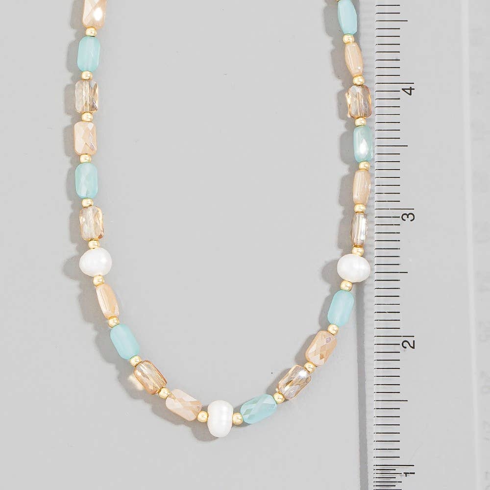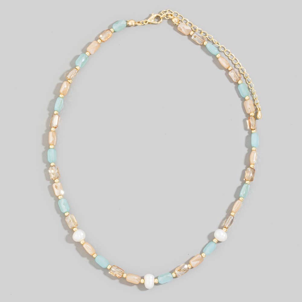 Bold and daring, this chain necklace encompasses a grand faceted rectangle beads design. A stylish chain necklace that's perfect for complementing any outfit you wear. This chain necklace is made with 60% Glass 10% Pearl 20% Plastic 10% Metal.
