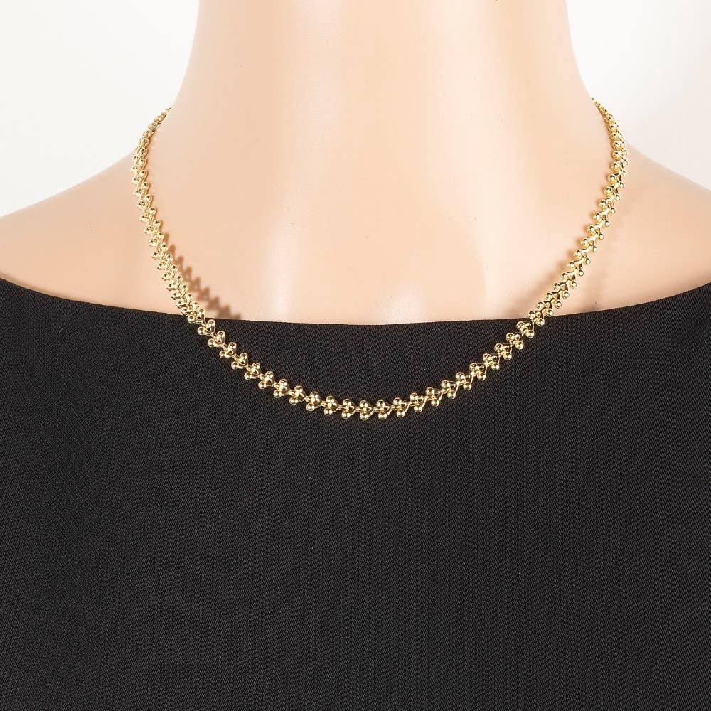 Add a dash of charm with this playful repeating ornate chain link necklace. Its eye-catching design adds a sophisticated twist to any outfit, perfect for day or night. Crafted from 100% brass, it measures 15.5 inches with a 2-inch extension for the perfect fit.