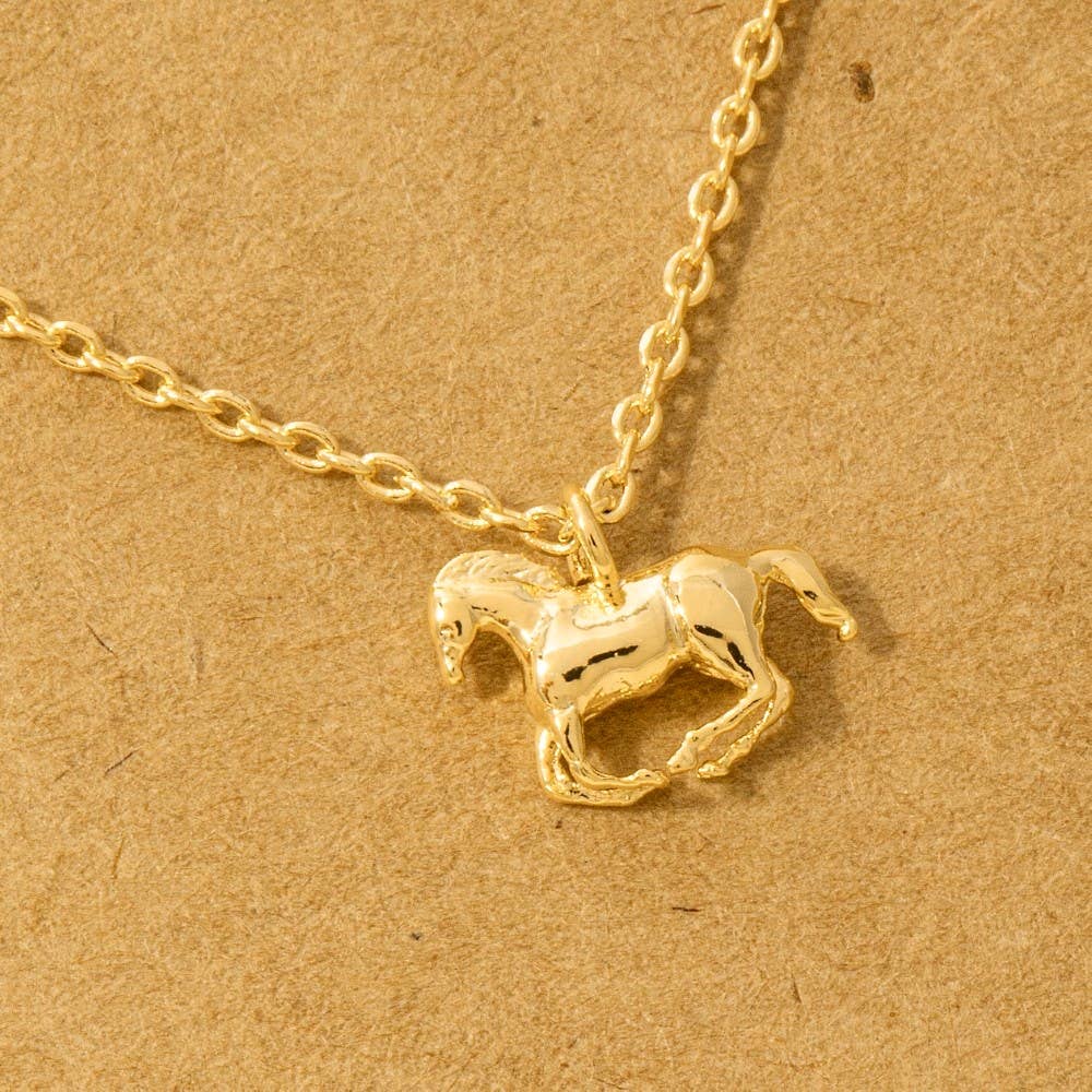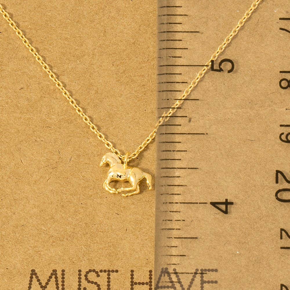The perfect way to add some sparkle to your outfit, this necklace incorporates a remarkable gold dipped mini horse pendant design. Add a dash of sophistication to your look with this versatile necklace, a must-have for fashion enthusiasts. 100% Brass. Made in Korea.