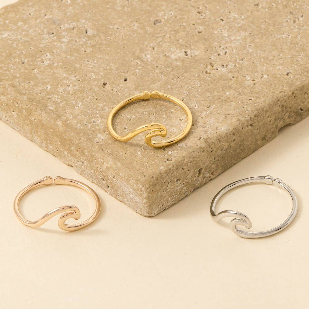 Perfect for any fashion-forward individual, this ring brings a one-of-a-kind gold dipped wave cutout adjustable design. A must-have ring for anyone who loves to add some flair to their outfits.