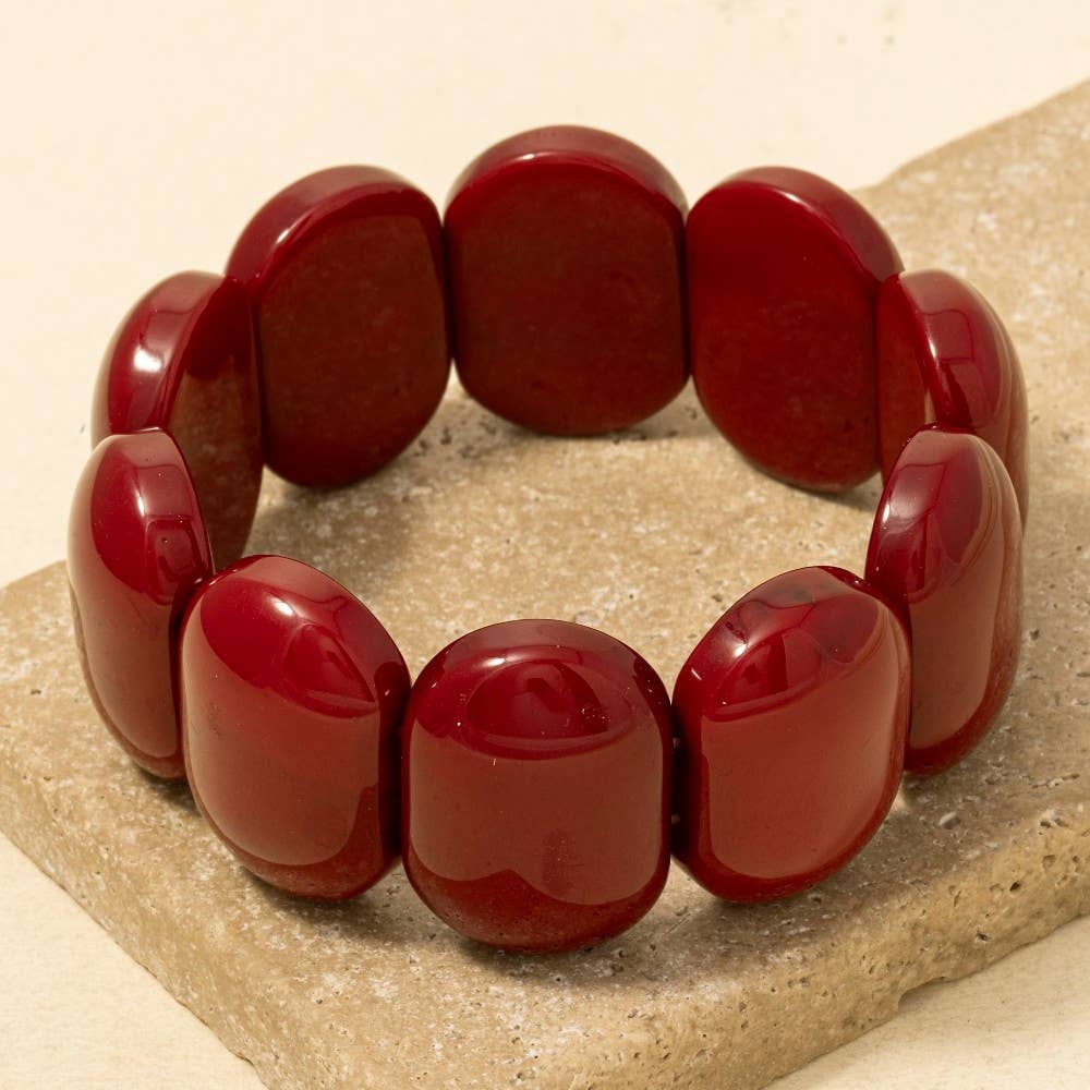 Add a pop of playful charm with this Large Round Acetate Resin Elastic Bracelet in Tortoise. Crafted from smooth resin acetate and flexible polyurethane, its bold round beads make a stylish statement while the elastic design ensures easy wear. Perfect for layering or wearing solo, this bracelet effortlessly spices up any outfit with a unique and fun vibe.