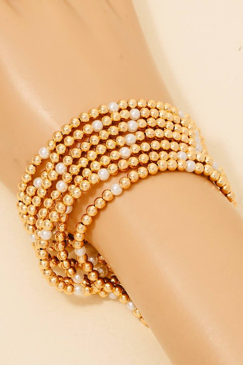 Bold and daring, this stackable bracelet comes with a special layered pearl and metallic beaded bracelet set design. Infuse your ensemble with a touch of sophistication using this versatile stackable bracelet, a game-changer in the world of fashion.
