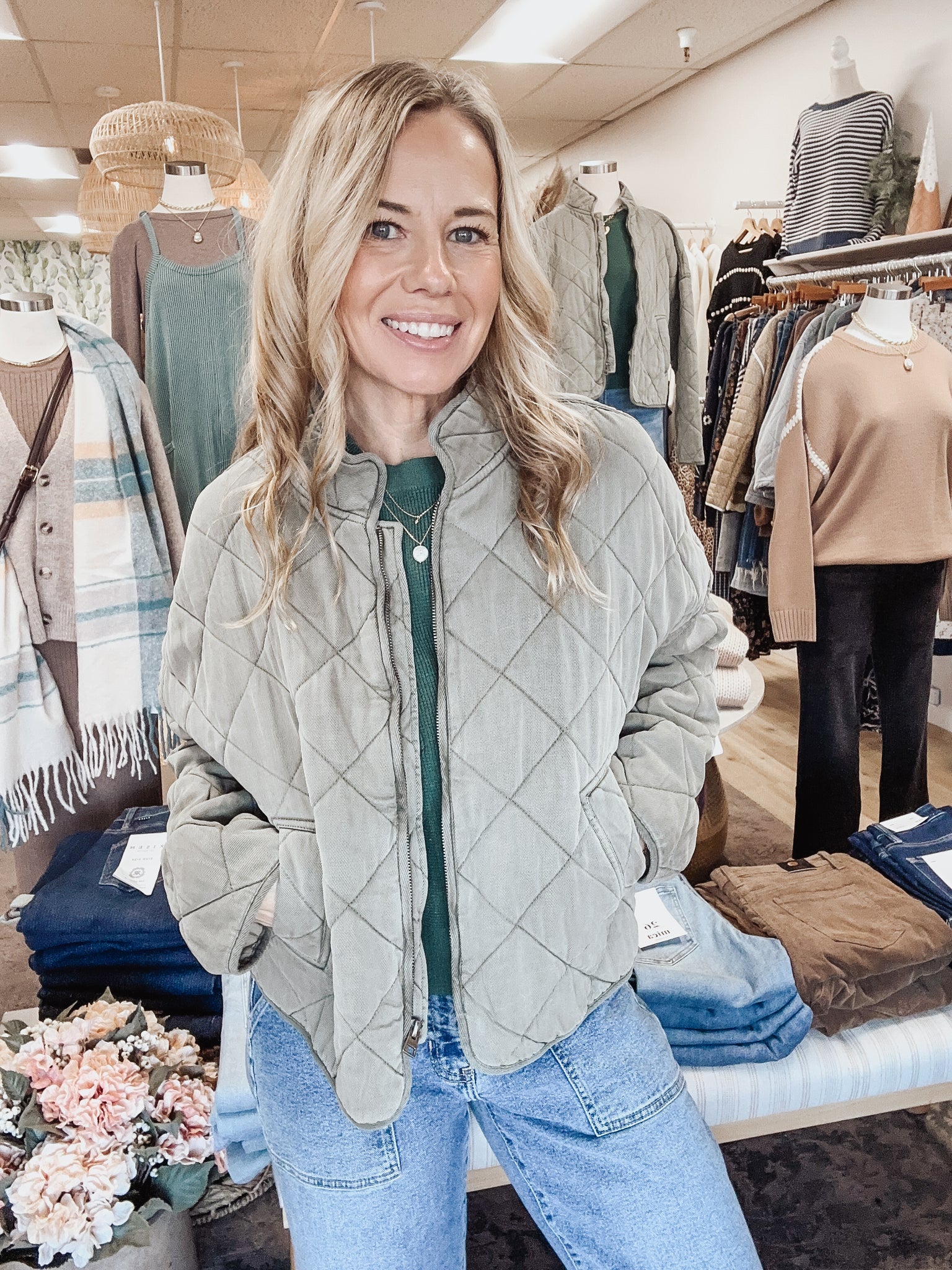 Meet the Crosswind Quilted Jacket — a softly structured, diamond-quilted layer designed for effortless everyday wear. This neutral jacket features a relaxed silhouette, curved hemline, and easy front pockets, making it the ideal throw-on piece for chilly mornings or layered winter outfits.
