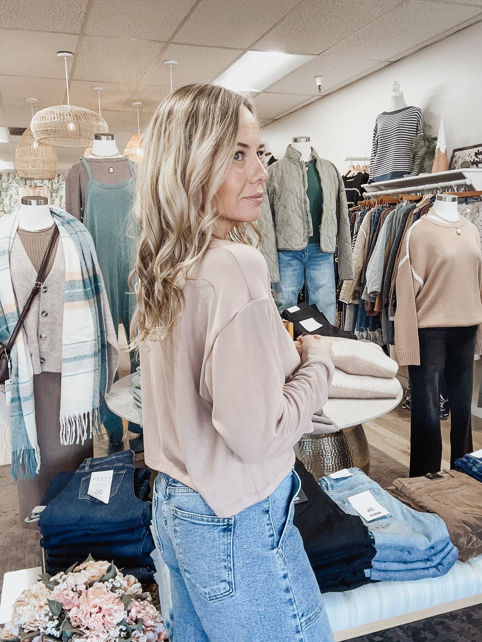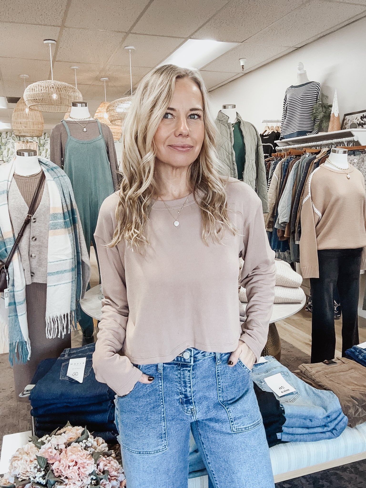 The Lila Soft Long Sleeve Top is one of those pieces you’ll want in every color. Made from an ultra-soft, lightweight fabric, this top features a relaxed fit, dropped shoulders, and an easy cropped length that pairs perfectly with high-rise denim.