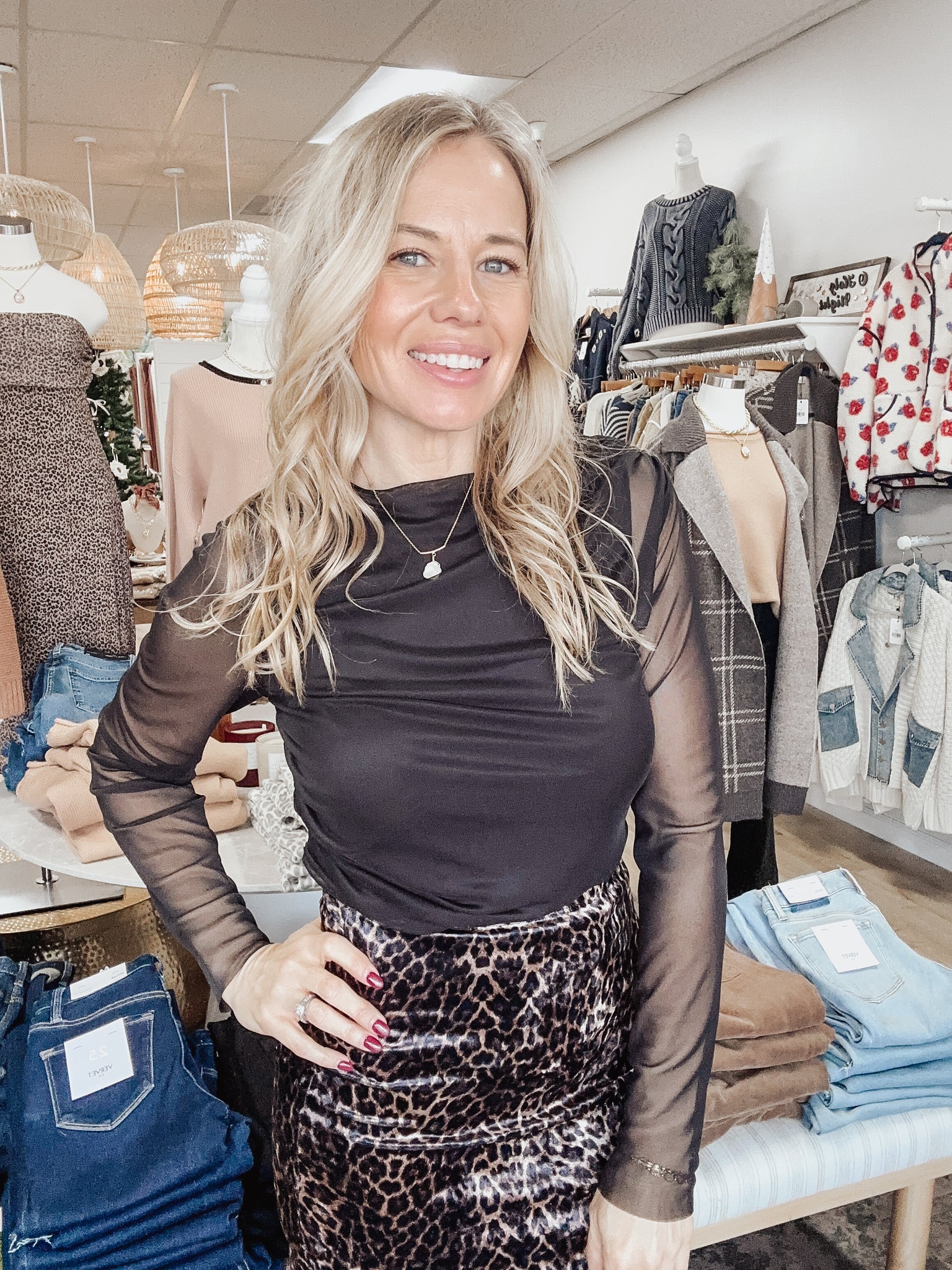 It’s stretchy, comfortable, and pairs effortlessly with everything — from wide-leg denim to your favorite skirts. When you want a look that feels timeless, polished, and just the right amount of sultry, this is it.
