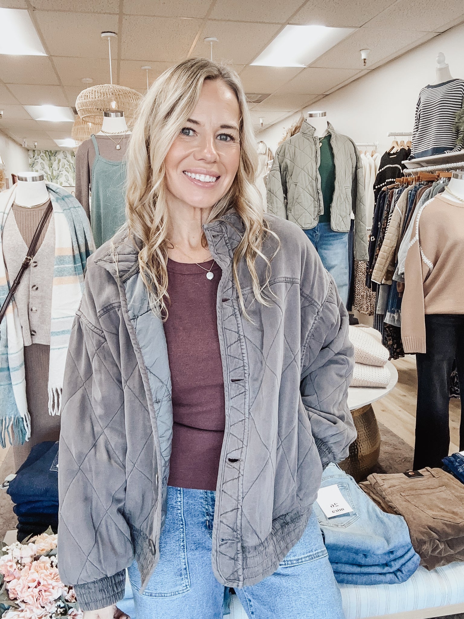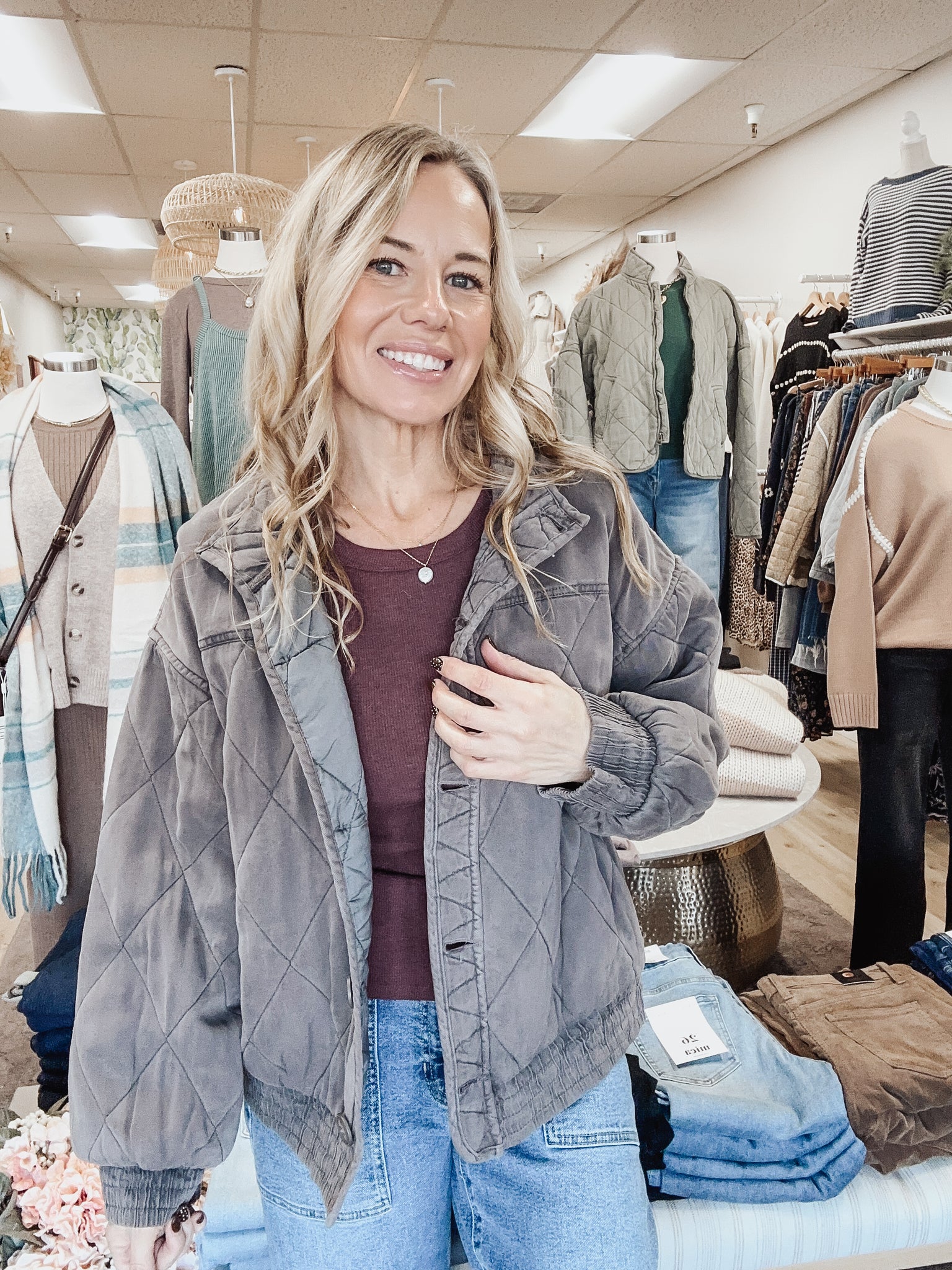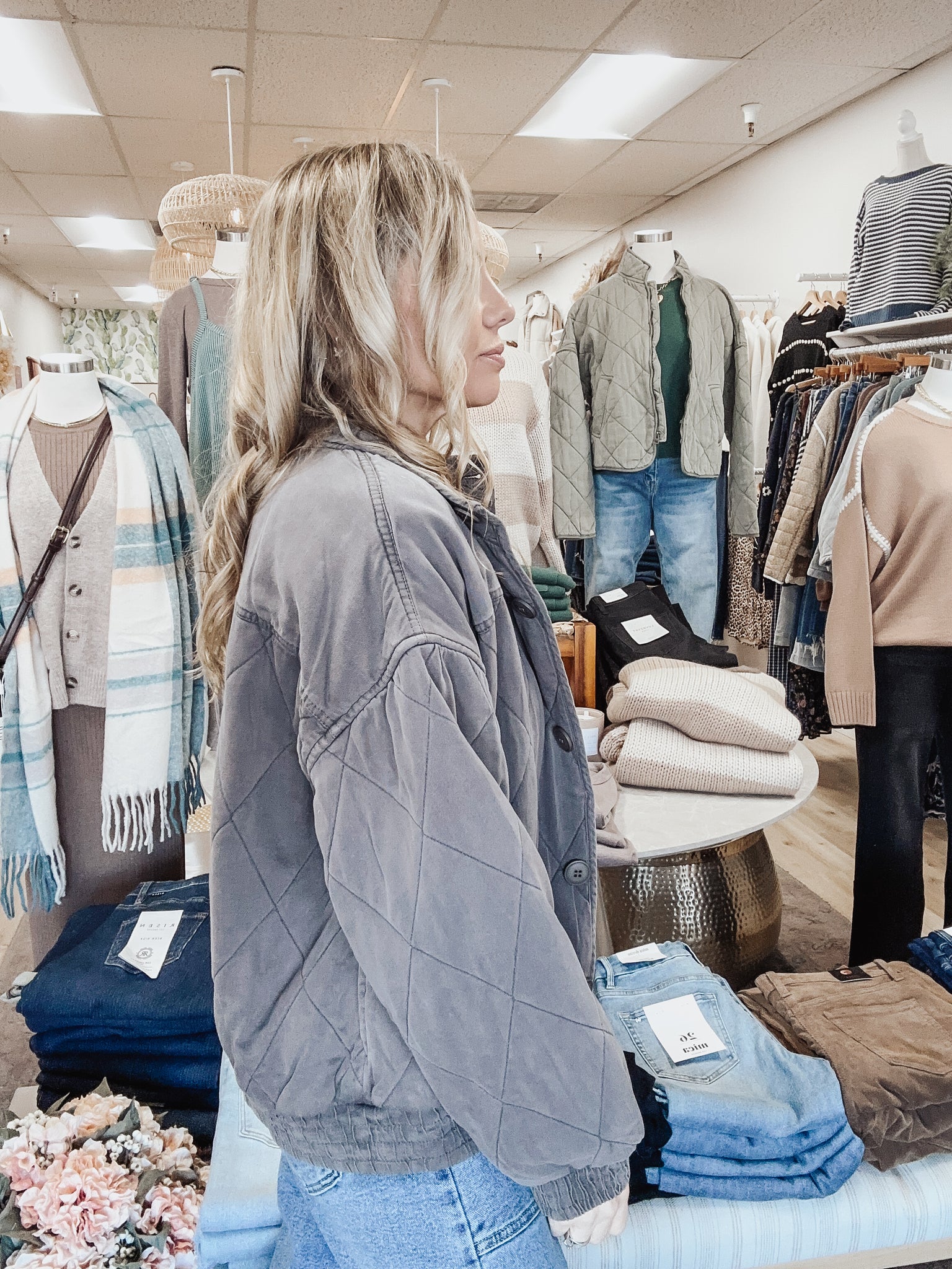 Ashton Washed Quilted Button Down Jacket - Charcoal