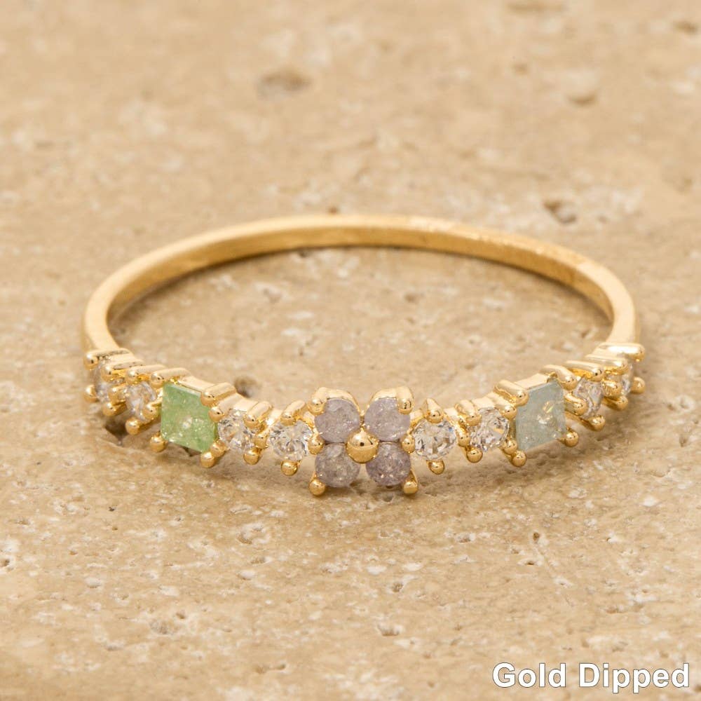 Upgrade your ring game, this ring reveals an intricate cz flower studded delicate design. Take your style to the next level by incorporating this versatile ring, a key element in achieving a polished look. This ring is made with 70% Brass and 30% Cubic Zirconia. Ring Size 6.5