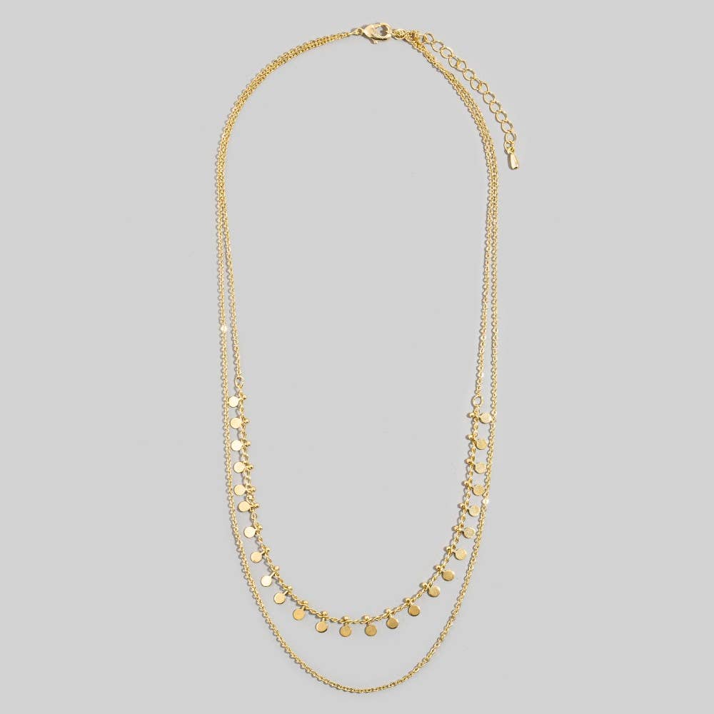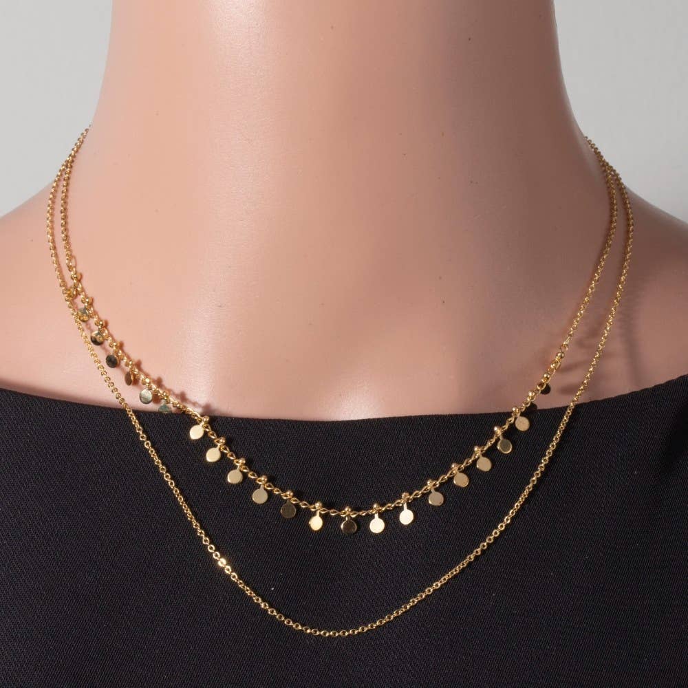 Make a statement, this chain necklace evokes a captivating dainty layered chain mini disc charms necklace design. Elevate your fashion IQ with this versatile chain necklace, designed to seamlessly integrate into any style profile.This chain necklace approximately measures: Length: 17 Inches Extension: 2.5 Inches This chain necklace is made with 100% Brass.