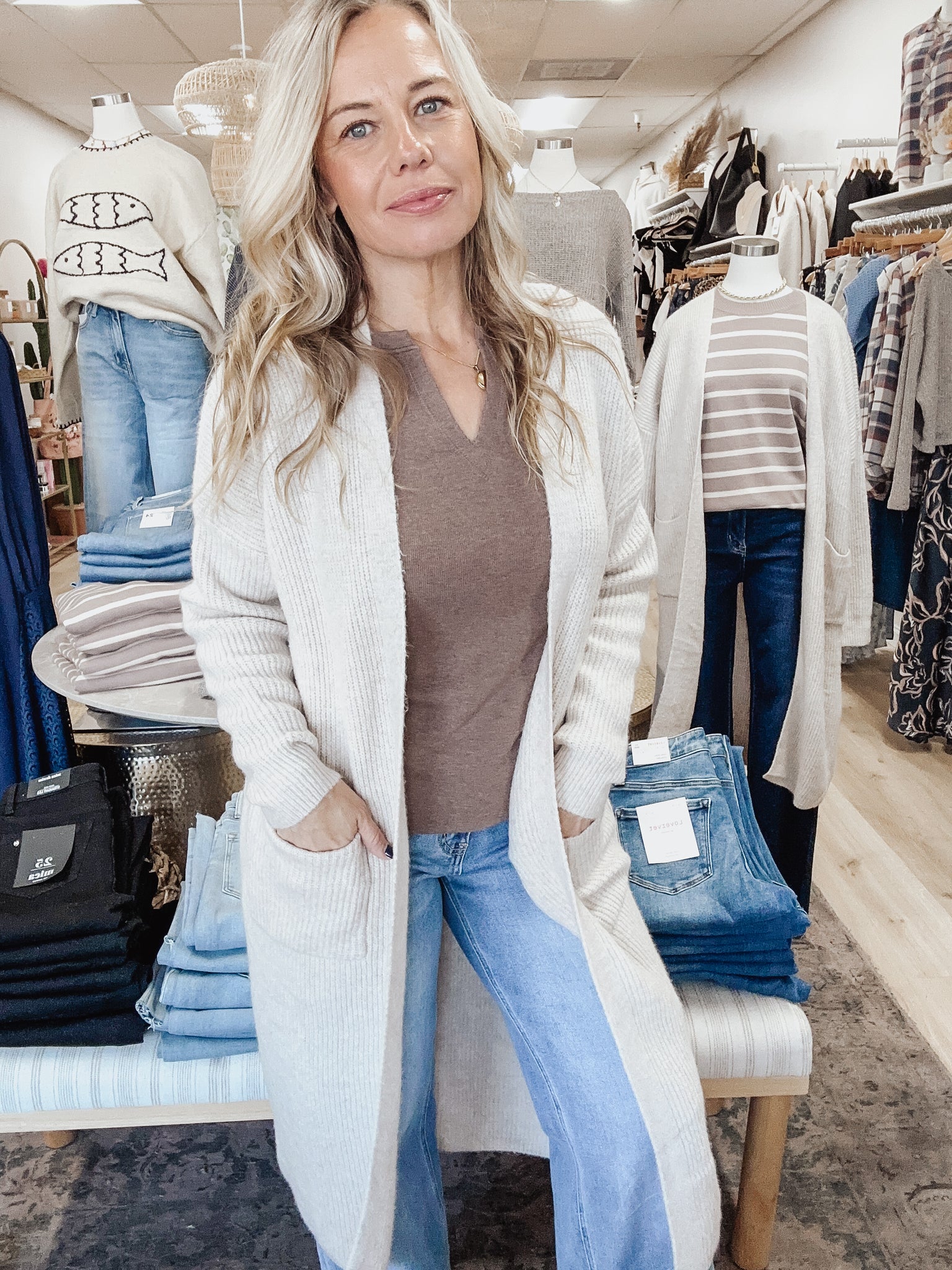 Meet the Everyday Luxe Modal Top—the ultimate layering essential you’ll reach for year-round. Crafted from ultra-soft modal with a flattering ribbed texture, this long-sleeve features a subtle notched v-neckline for a touch of laid-back sophistication. Lightweight yet cozy, it’s perfect for pairing with denim, skirts, or layered under jackets and cardigans. Available in three versatile shades—charcoal grey, off-white, and classic black—so you can stock up on your new favorite basic. Model is wearing a medium.