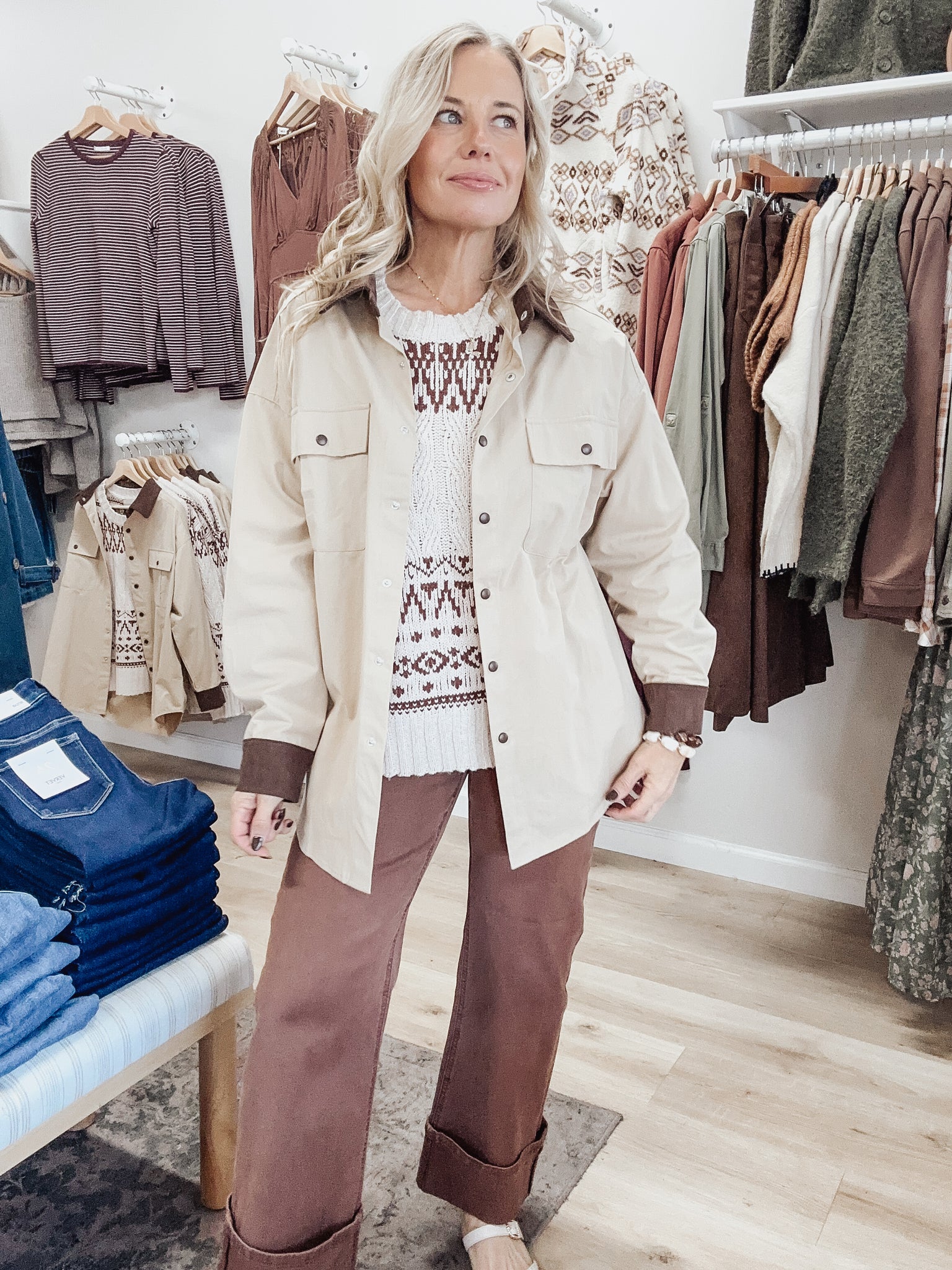 Rugged meets refined in the Fieldstone Corduroy Barn Jacket. This utility-style layer features a structured cotton body with rich brown corduroy accents on the collar and cuffs for that classic barn coat feel. The snap-button front makes it easy to throw on and go, while the oversized fit is perfect for layering over flannels, knits, and tees. Front chest pockets add a functional touch, and the earthy olive tone works effortlessly with denim and boots.