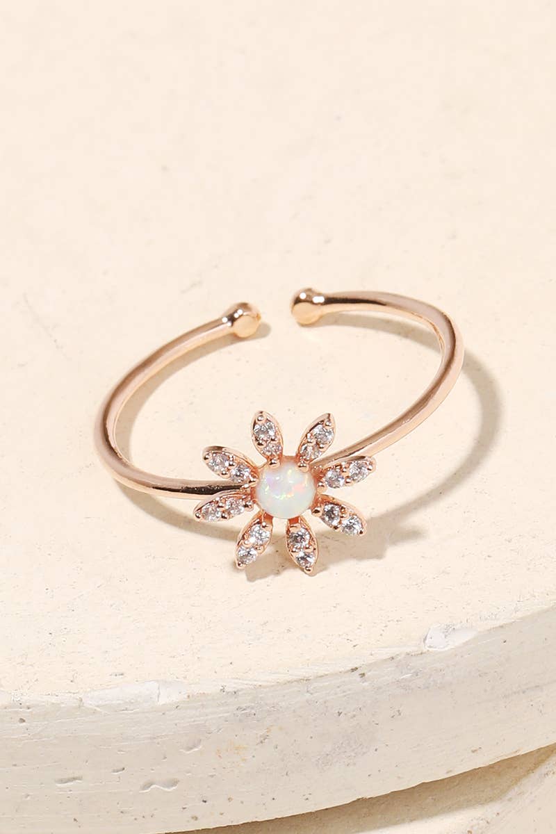 Gold Dipped Opal Flower Fashion Ring - Gold