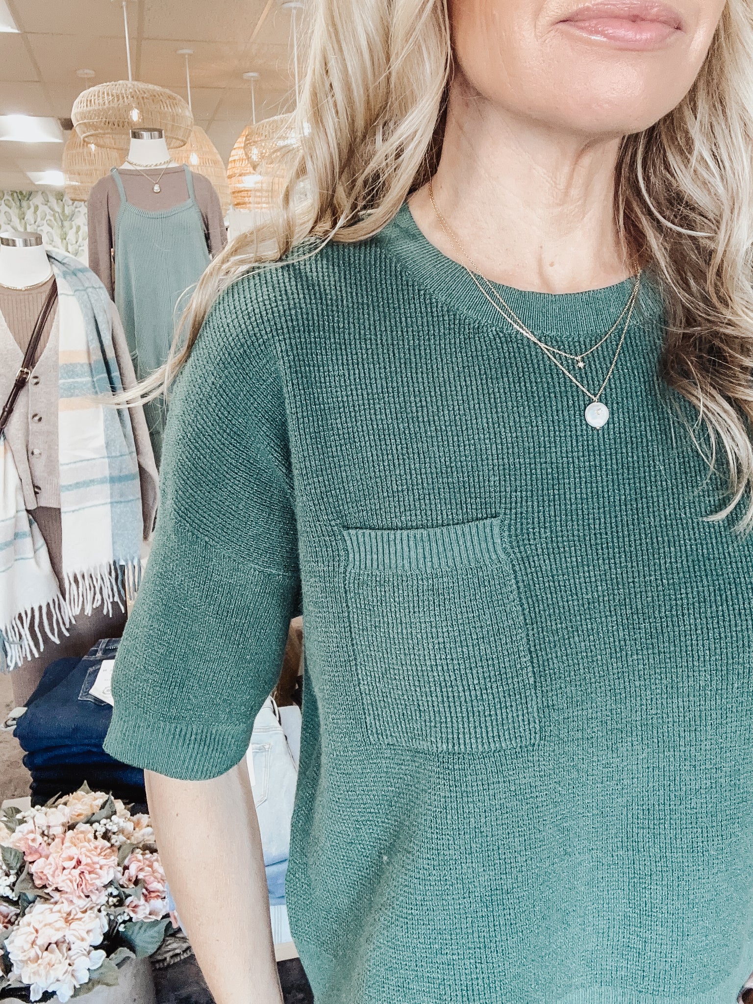 The Golden Hour Ribbed Tee is that easy, wear-anywhere staple you’ll keep reaching for. Made from a soft ribbed knit, this short sleeve tee features a relaxed yet flattering fit with a classic crew neckline and subtle texture that elevates the everyday tee.