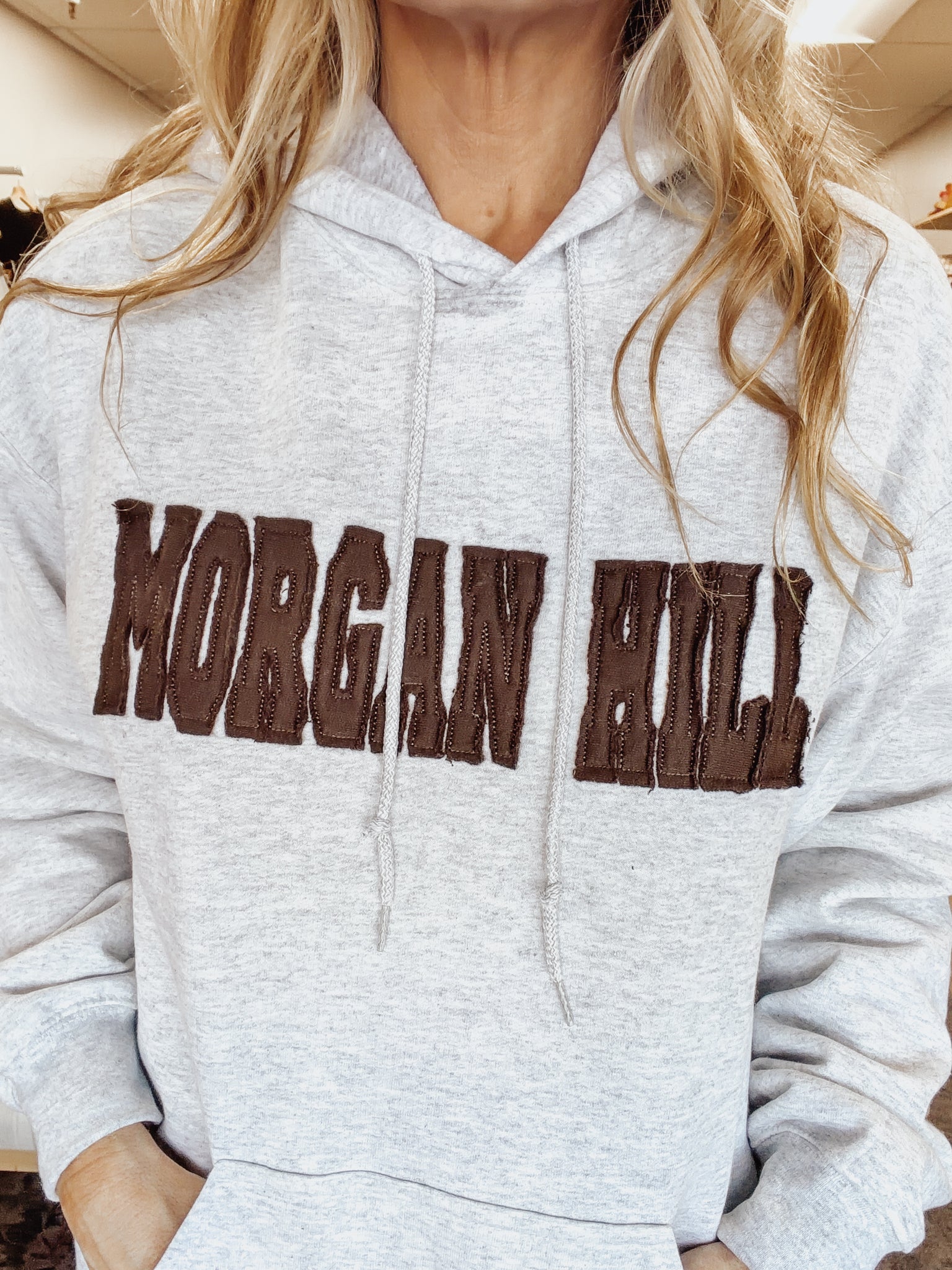 Morgan Hill Hoodie - Grey with Brown Letters