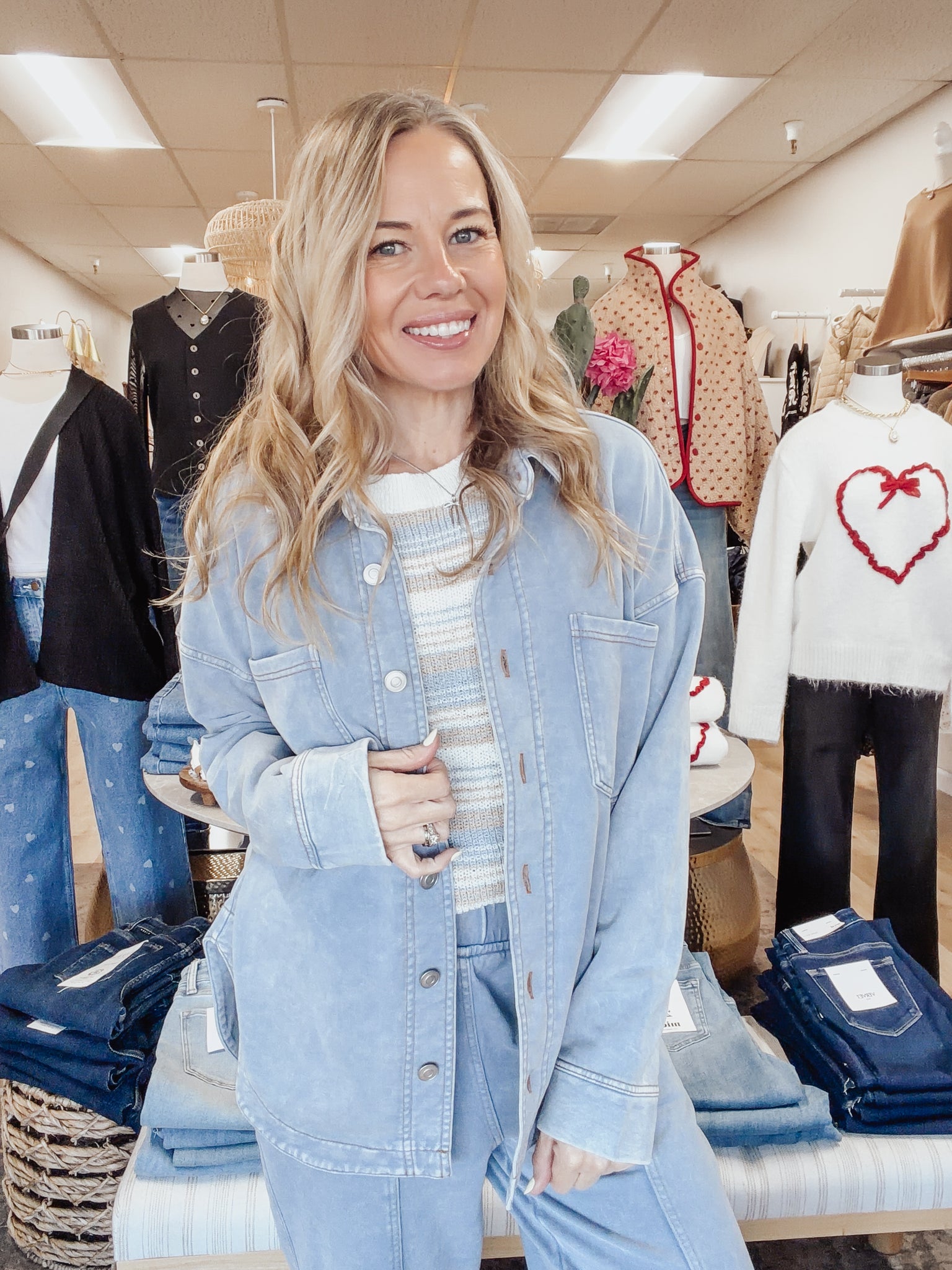 Throw it on over knits, tees, or dresses for cool mornings, casual afternoons, and everything in between. This is the kind of piece that instantly pulls an outfit together.