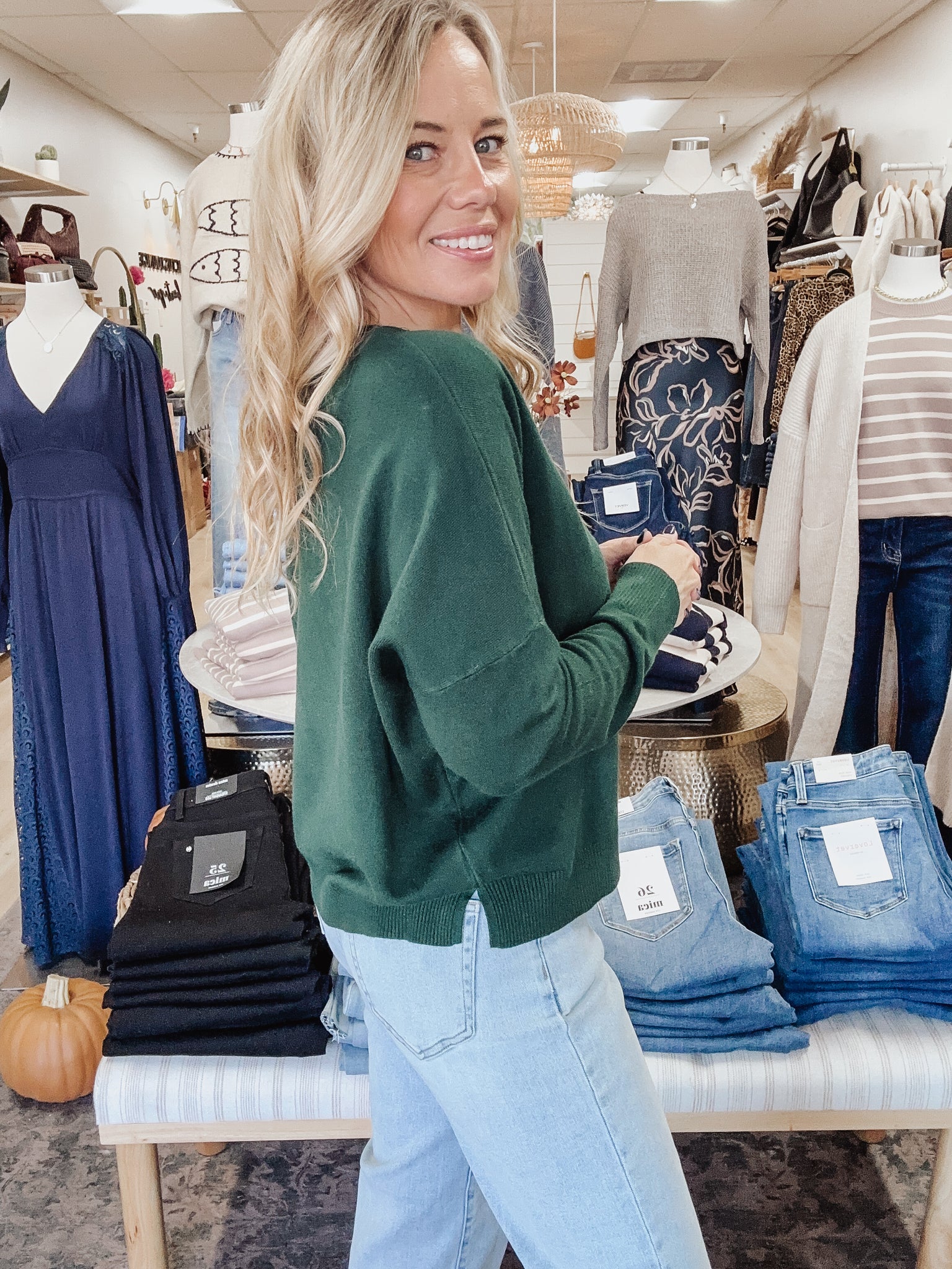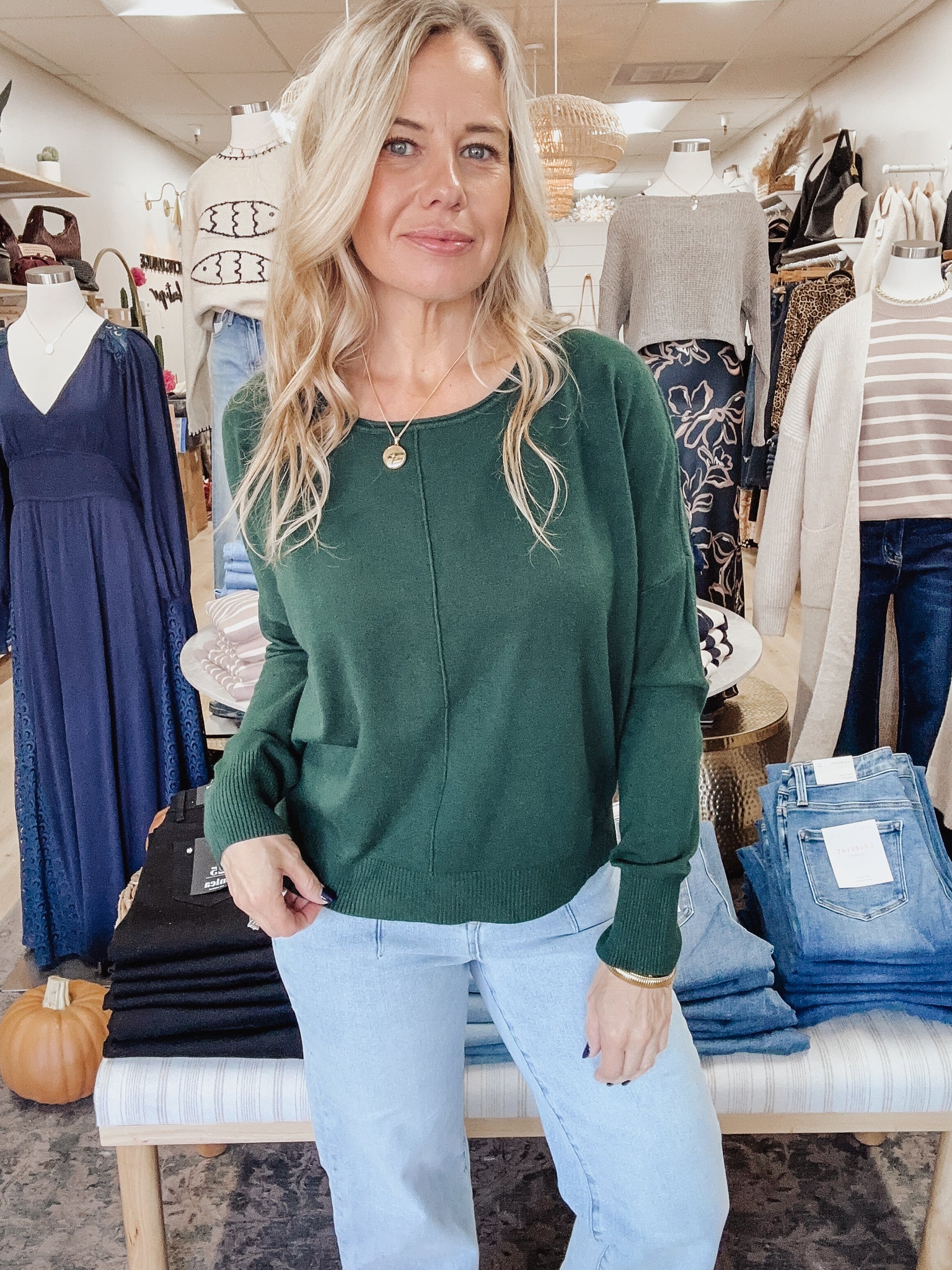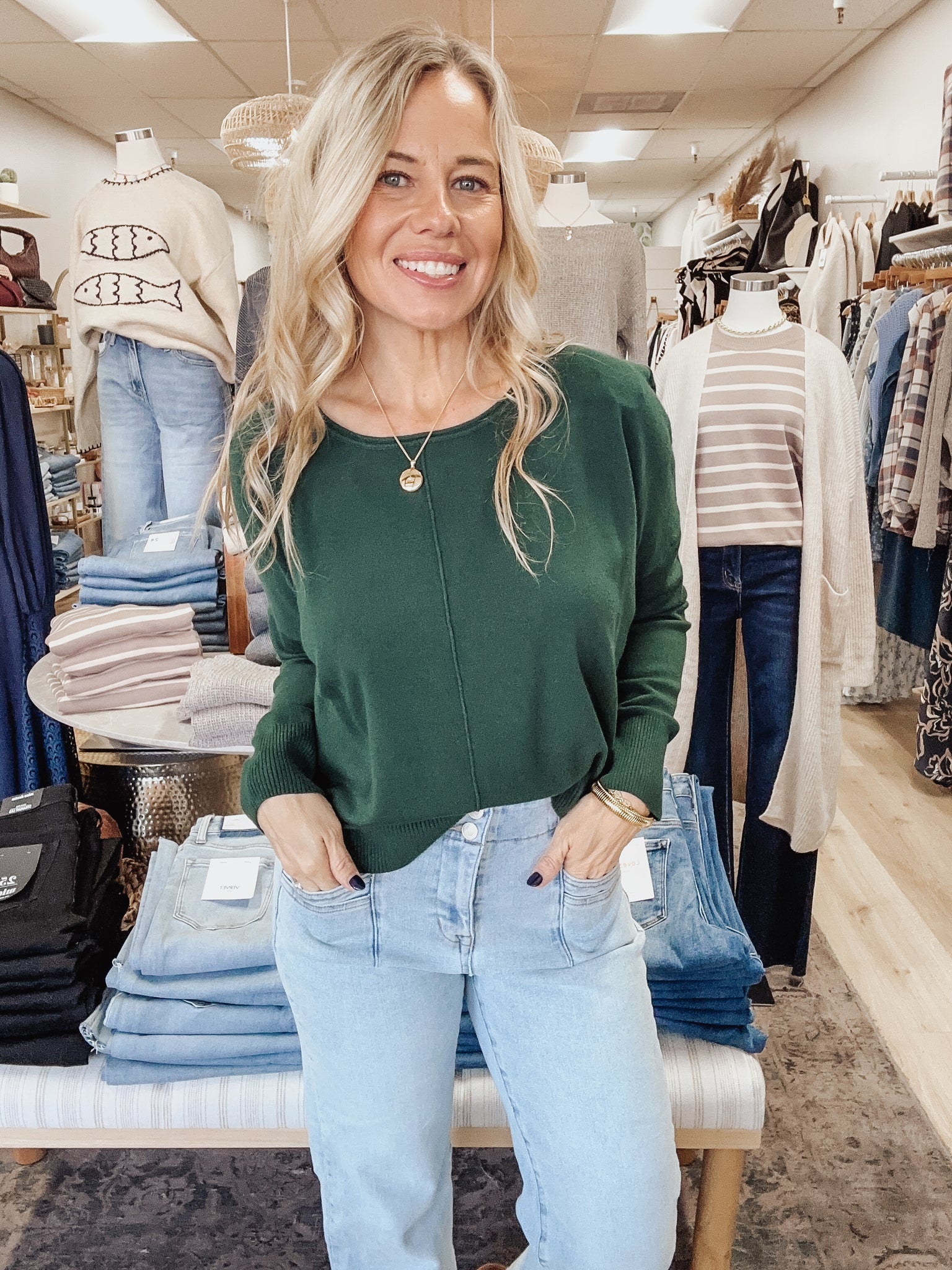 Sutton Crew Neck Pullover with Middle Seam Detail - Hunter Green